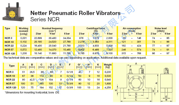 氣動滾軸振動器NCR3,NCR10,NCR22,NCR57,NCR120