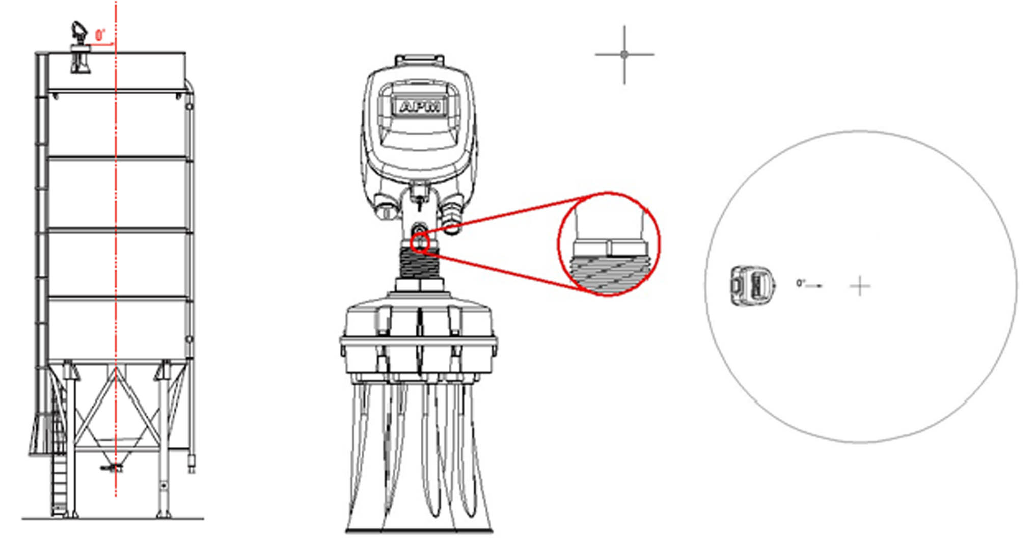 l 0度標記需要指向料倉的中心(包括方形倉及開放倉) |