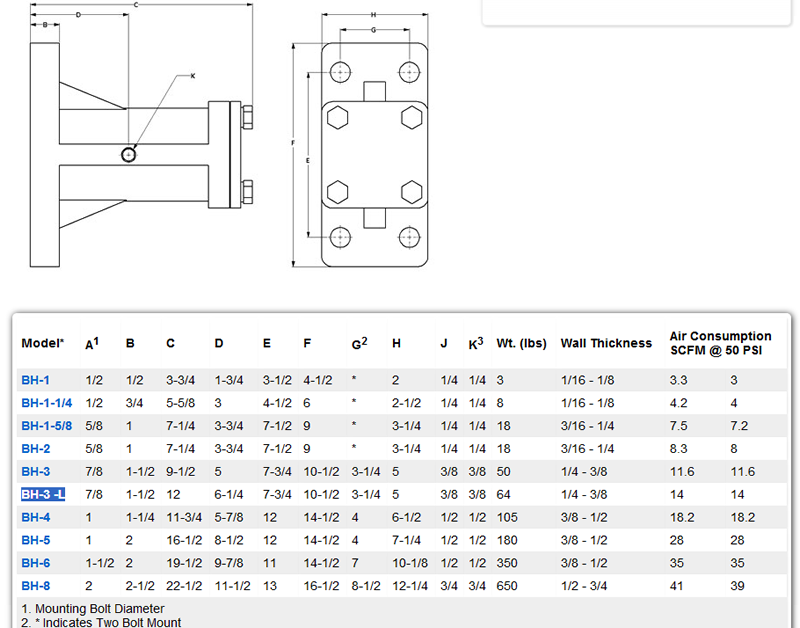 NAVCO vibrators型號包括:BH-1,BH-1-1/4,BH-1-5/8,BH-2,BH-3,BH-3 -L,BH-4,BH-5,BH-6,BH-8,氣動振動器獨特的navco BIN映射方法涉及的儲存容器和其預期的散裝材料的詳細的評價。建議的基礎上的各種因素,包括體積密度,粒度,水分,溫度,容器的大小和形狀。navco氣動活塞振動器的大小及其影響區域的應用是確定的。振動器位于料倉或漏斗重疊區域影響振子在一個序列中,提供最優流模式和最小公用工程消耗操作